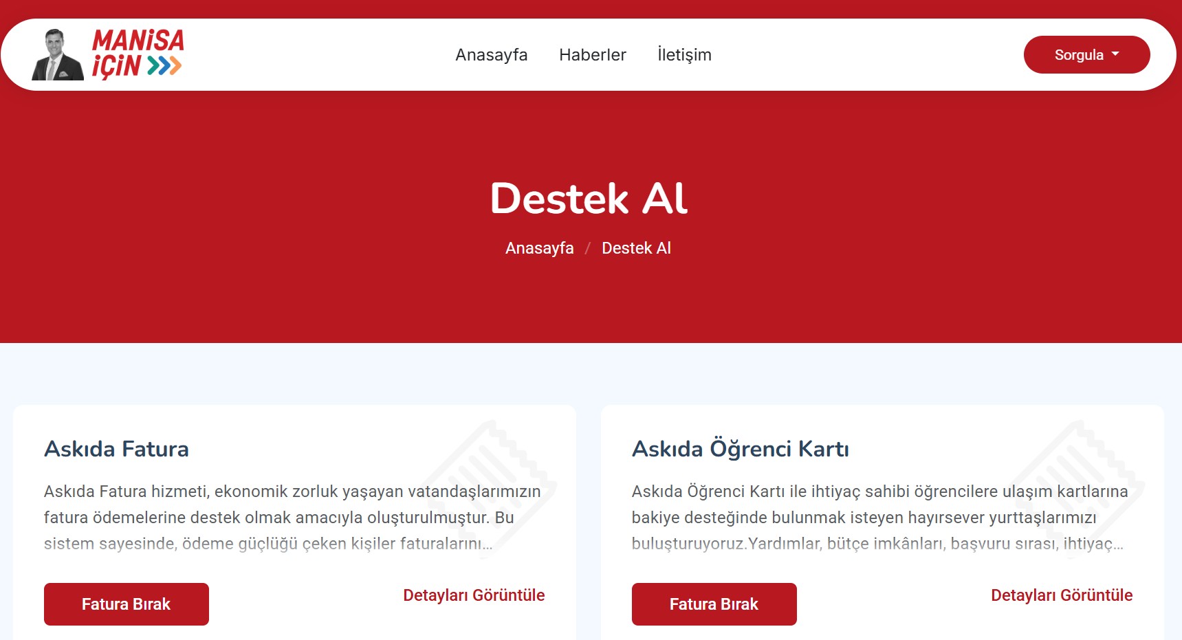 Proje kapsamında sisteme “Askıda Fatura” ve “Askıda Öğrenci Kartı” olmak üzere iki ayrı modül entegre edildi. MASKİ (Manisa Su ve Kanalizasyon İdaresi) iş birliğiyle su faturaları sisteme dahil edilirken, MANULAŞ A.Ş. iş birliğiyle öğrenci ulaşım kartı başvuruları platform üzerinden alınacak.