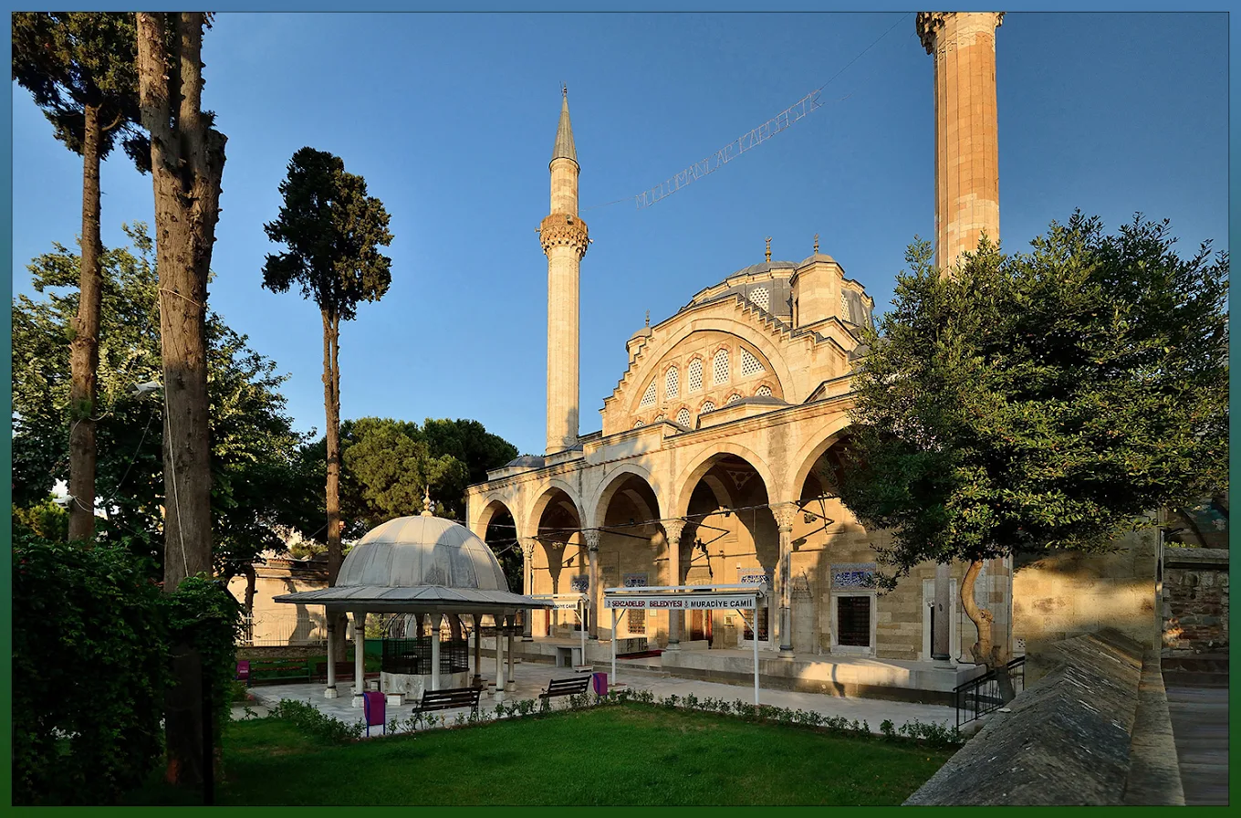 Manisa’daki en önemli Osmanlı eserlerinden biri de Muradiye Camii’dir. 1583 yılında Kanuni Sultan Süleyman’ın oğlu III. Murad adına, Mimar Sinan tarafından başlatılan inşaat, mimar Mahmut Ağa tarafından tamamlanmıştır.