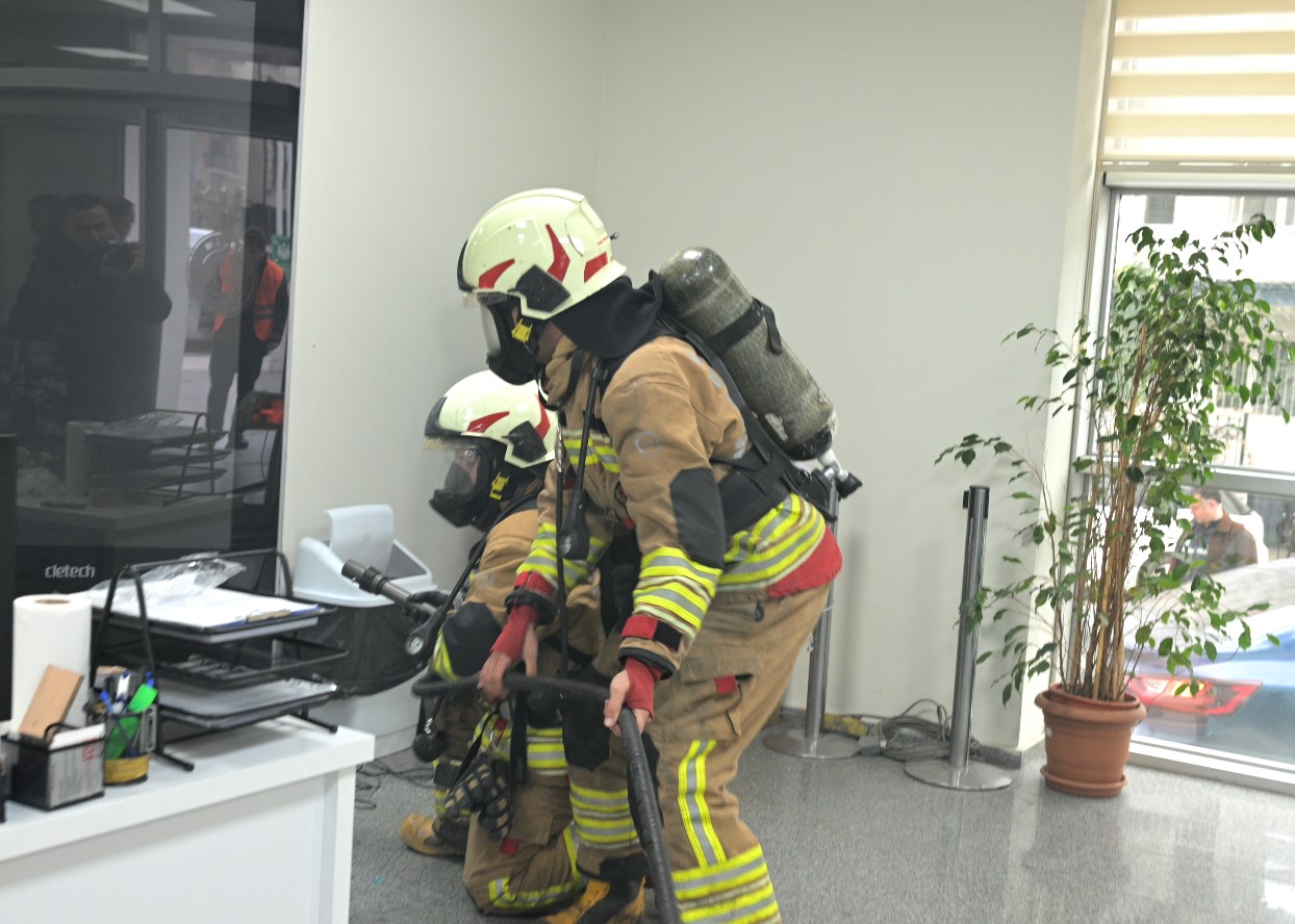 MASKİ idari hizmet binasında mesai saatleri içerisinde yapılan tatbikatta, senaryo gereği binada yangın çıktığı varsayıldı. Yangın alarmının devreye girmesinin ardından bina içerisinde bulunan personeller, önceden belirlenen tahliye planı doğrultusunda kısa sürede binayı boşalttı.