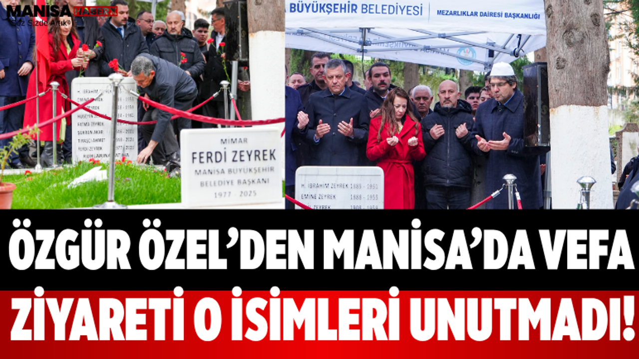 Kabir ziyaretlerine devam eden CHP Genel Başkanı Özgür Özel, Manisa’nın önemli isimlerinin mezarlarına da karanfil bıraktı. Bu kapsamda Manisa Büyükşehir Belediye Başkanı Ferdi Zeyrek’in kabri ziyaret edildi.