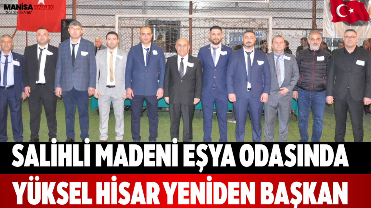 Yüksel Hisar başkanlığındaki Salihli Madeni Eşya Sanatkarları Esnaf Odası’nın yeni yönetim kurulu; Bekir Yılmaz, Ergül Buz, Ayhan Akın, Ahmet Dağhan, Hüseyin Bacak, Mehmet Doymaz, Ahmet Acar ve Mesut Özcan’dan oluştu. Denetim kuruluna ise İsmail Doğangönül, Ali Durmuş ve Mustafa Yıldız seçildi.