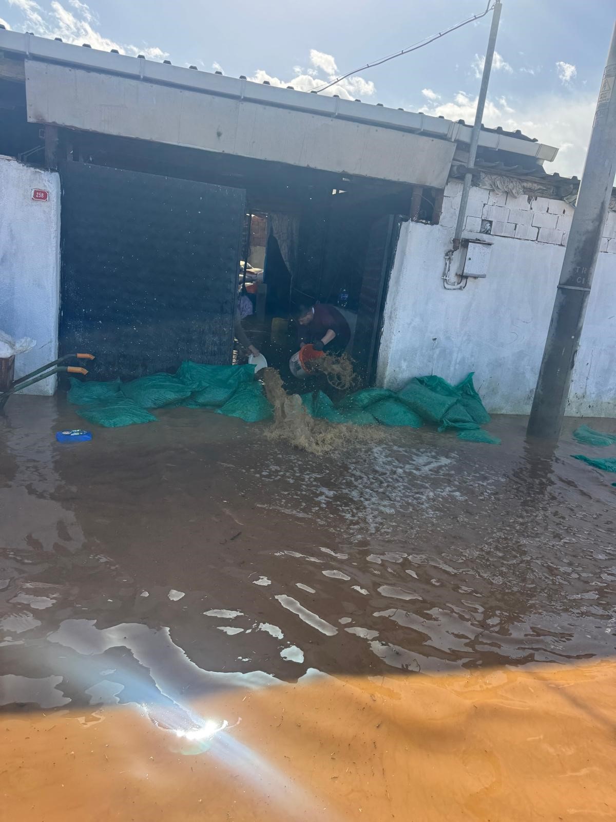 Taşkından yalnızca konutlar değil, mahallede bulunan bazı hayvan damları da etkilendi. Suların çekilmesi için bölgede tahliye çalışmaları başlatıldı.
