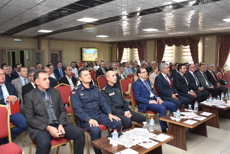 Toplantıya, İlçe Milli Eğitim Müdürü Mahmut Yenen, İlçe Jandarma Komutanı Binbaşı Doğukan Karaaslan, İlçe Emniyet Müdürü Burhan Demirkıran, okul yöneticileri ve kurum temsilcileri katıldı.