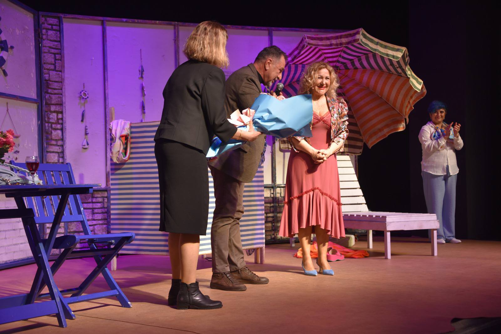 Gösterimi, Salihli Belediyesi Başkan Yardımcısı A. Yavuz Özdem ile Basın-Yayın, Halkla İlişkiler ve Tanıtım Müdürü Sultan Çolak da takip etti. Oyun sonunda sanatçıya çiçek takdim edilerek teşekkür edildi.