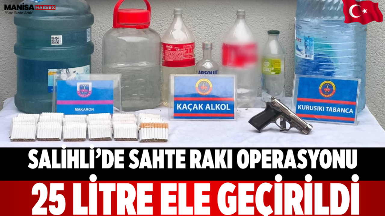 Salihli İlçe Jandarma Komutanlığı ekiplerince gerçekleştirilen aramada, A.C. (61) isimli şüpheliye ait ikamette 25 litre sahte rakı ele geçirildi. Sahte içkinin, satışa hazır halde bulunduğu değerlendirildi.