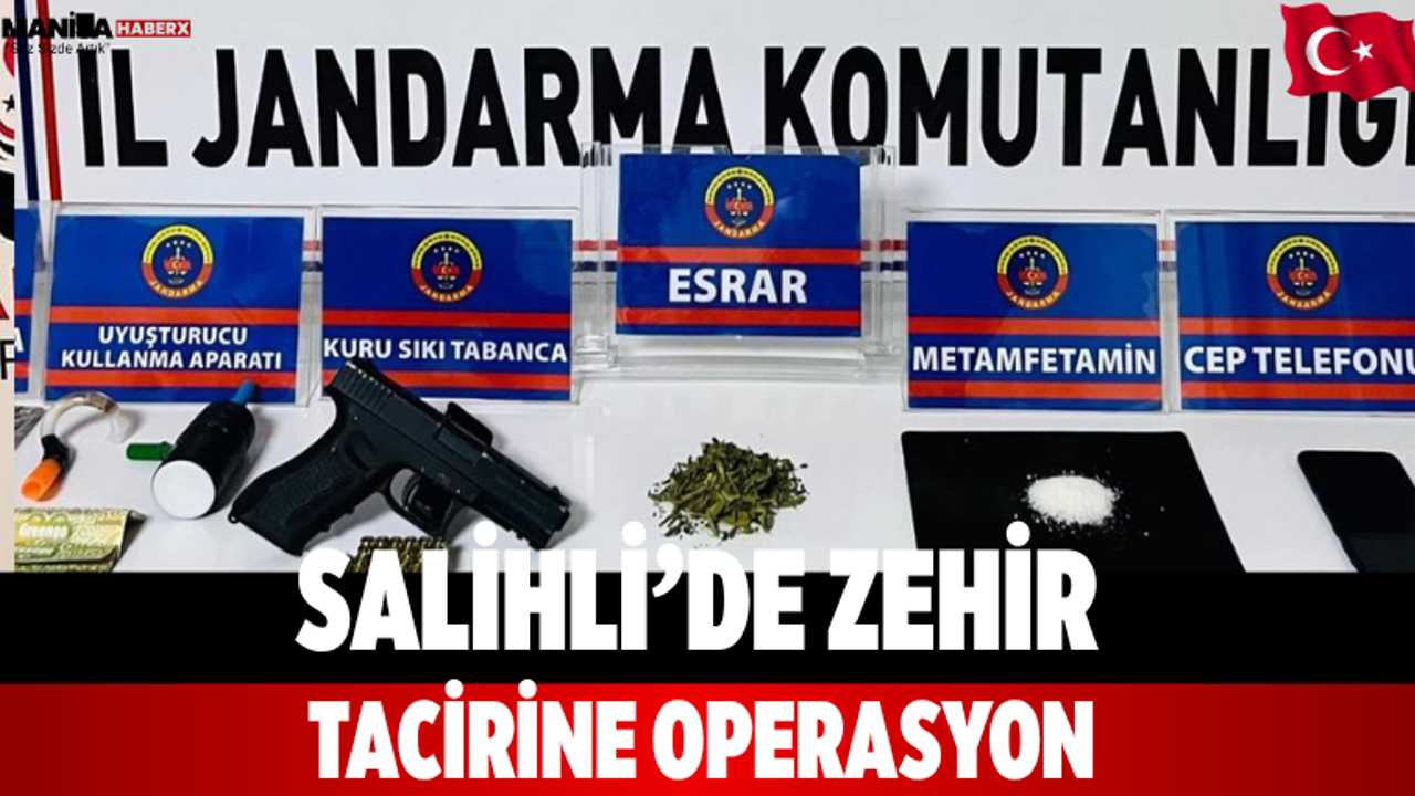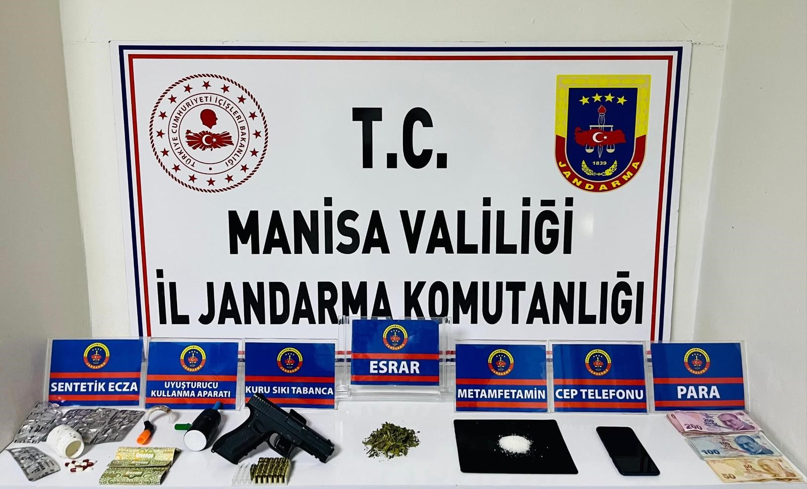 Manisa’nın Salihli ilçesinde jandarma ekiplerinin yürüttüğü istihbarat çalışmaları sonucu uyuşturucu ticareti yaptığı belirlenen bir şüpheliye yönelik operasyon düzenlendi. Operasyonda çeşitli miktarlarda metamfetamin, kubar esrar, uyuşturucu hap ve kurusıkı tabanca ele geçirildi.