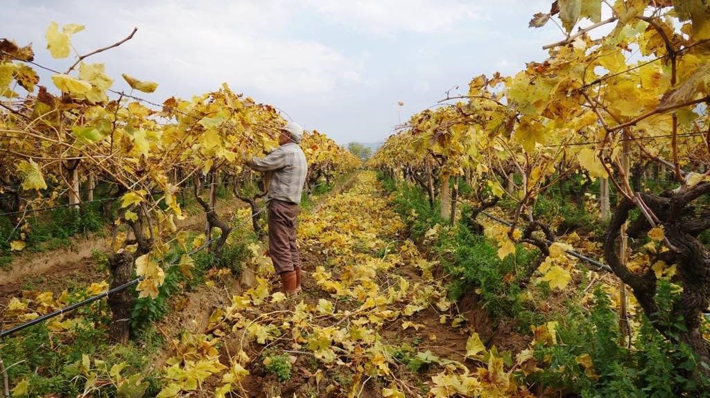 Manisa’nın Sarıgöl ilçesinde üzüm hasadının tamamlanmasının ardından bağlarda budama çalışmaları başladı. Hasat ve kesim işlemlerinin sona ermesiyle birlikte bağlarda sonbaharın etkisiyle yapraklar sarı ve kahverengi tonlara büründü.