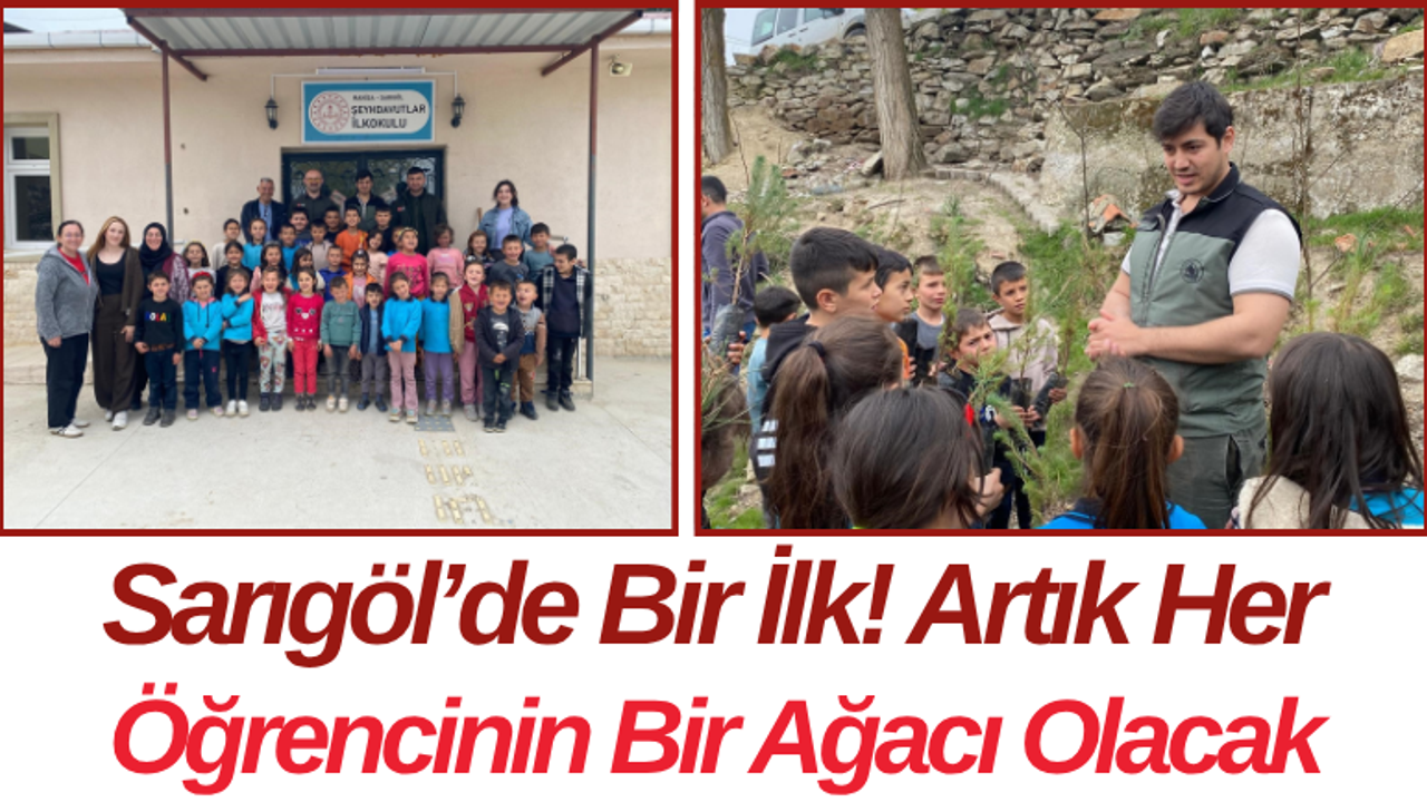 Sarıgöl’de İlçe Orman İşletme Şefliği tarafından hayata geçirilen “Her öğrencinin dikili ağacı olsun” projesi kapsamında öğrenciler kendi fidanlarını toprakla buluşturdu.