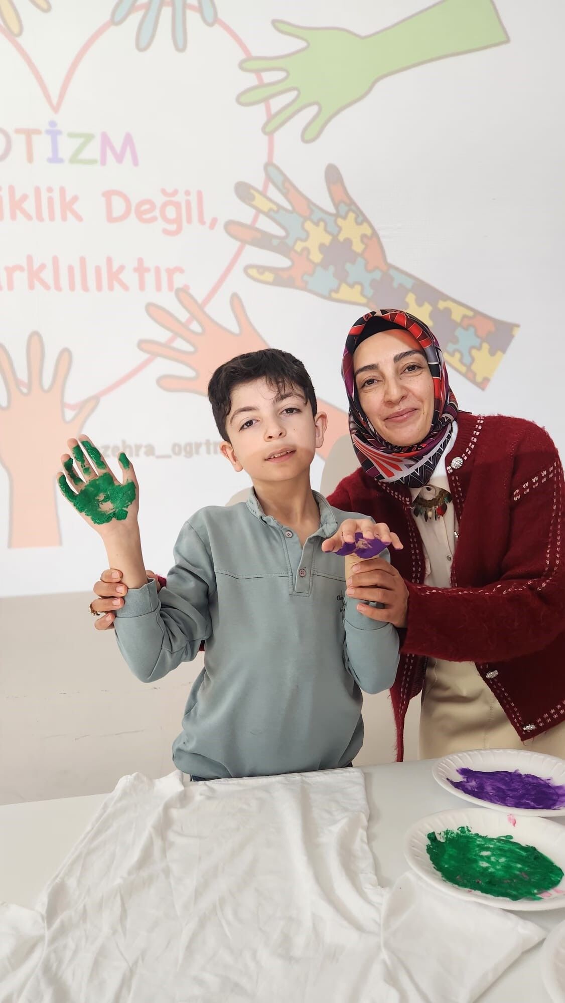 Okulda gerçekleştirilen programda özel eğitim öğrencileriyle birlikte tişört boyama etkinliği yapıldı. Öğrenciler, farklı renklerle tişörtleri boyayarak hem eğlenceli vakit geçirdi hem de farkındalık oluşturdu.