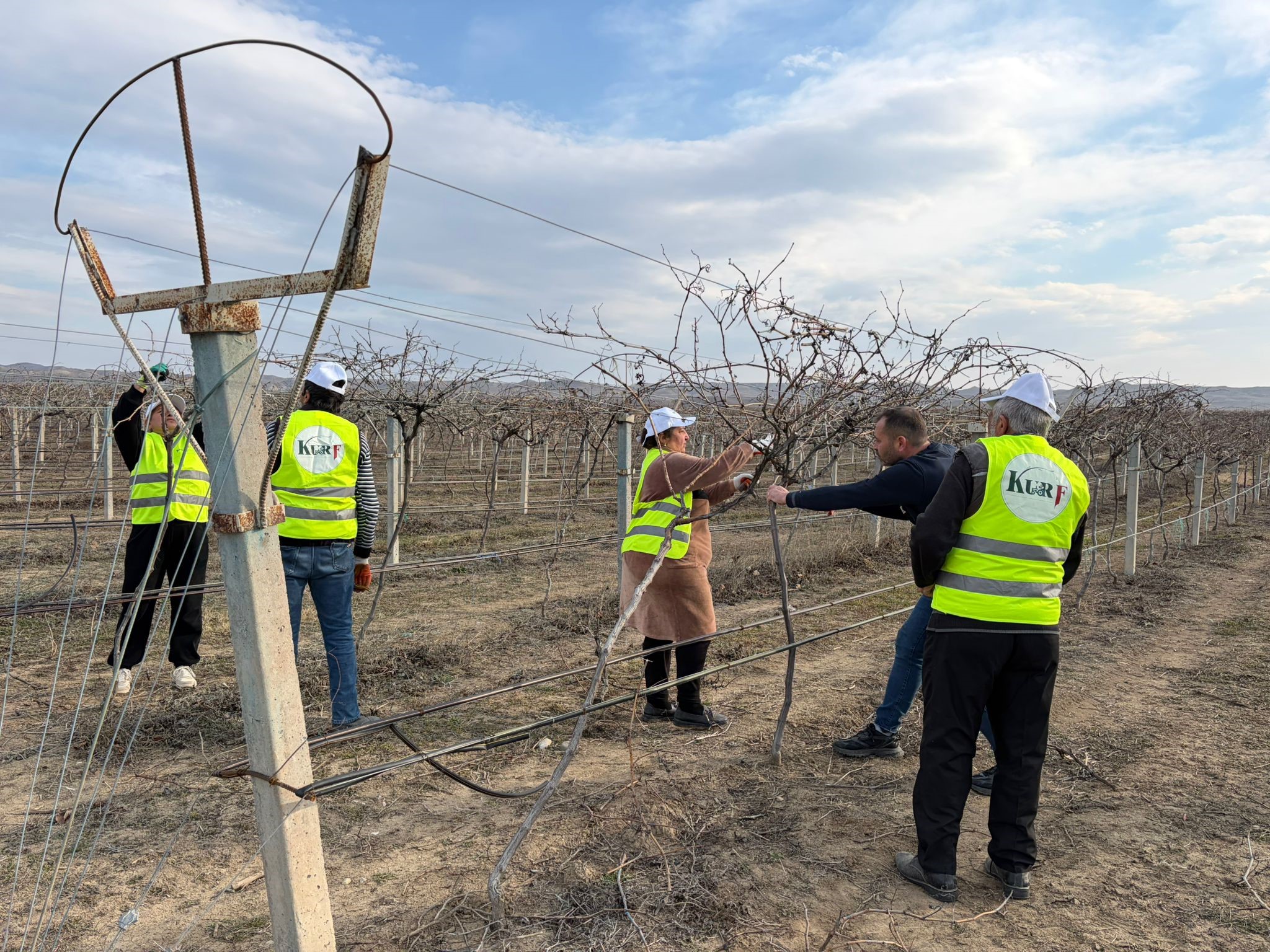 Gürcistan ve Ermenistan sınırına yakın konumda bulunan Ağstafa rayonunda faaliyet gösteren Kur Fruit Company firmasına ait üzüm bağlarında düzenlenen eğitim programı, verimliliği artırmaya yönelik olarak planlandı.