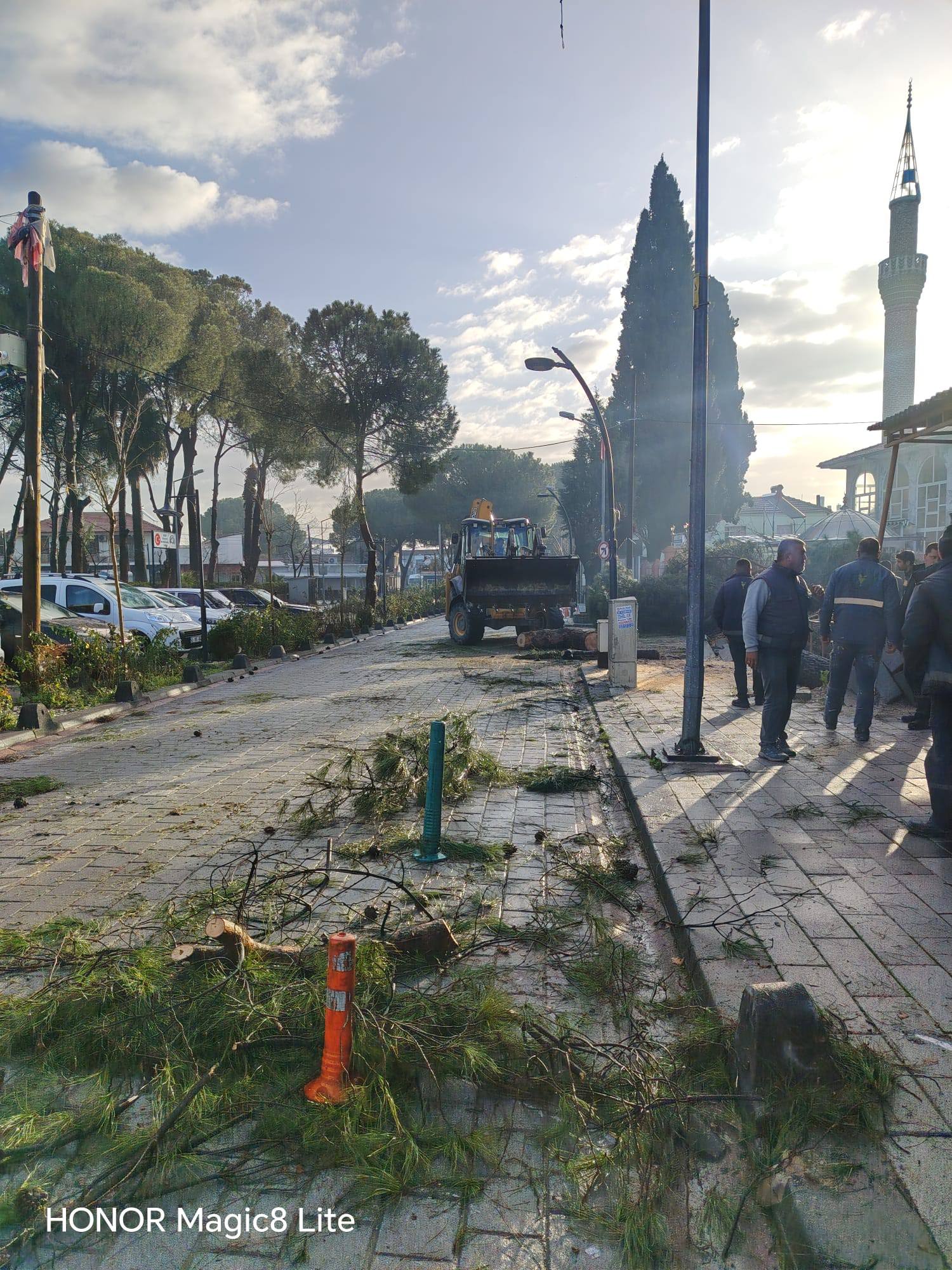Saruhanlı’da etkili olan aşırı rüzgâr ve şiddetli yağış nedeniyle ilçe merkezi ve mahallelerde yaklaşık 60 çam ağacı devrildi.