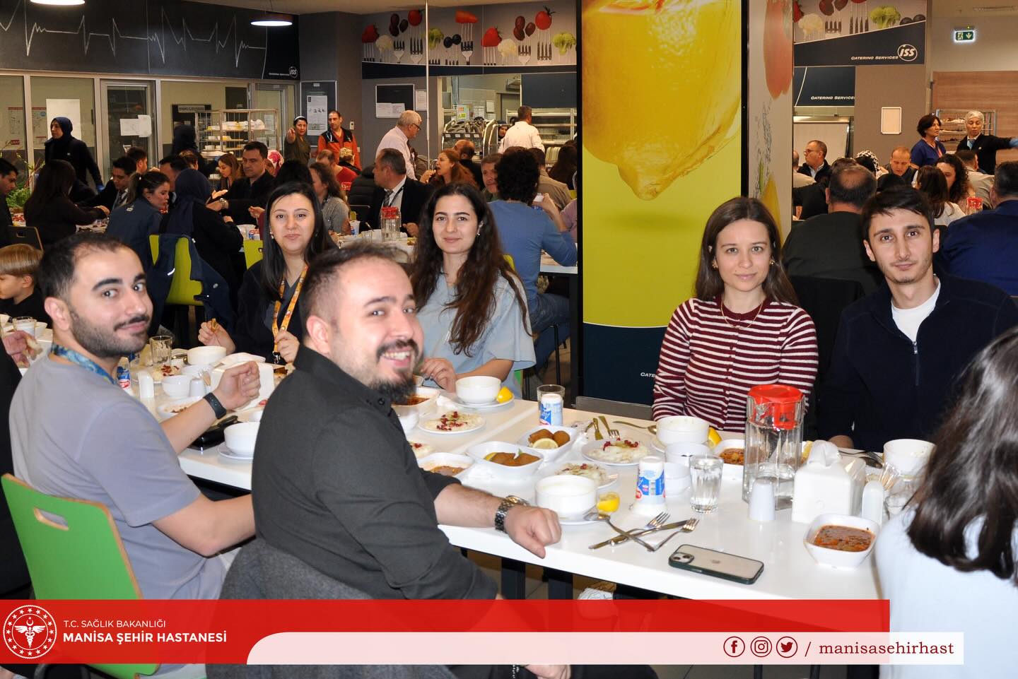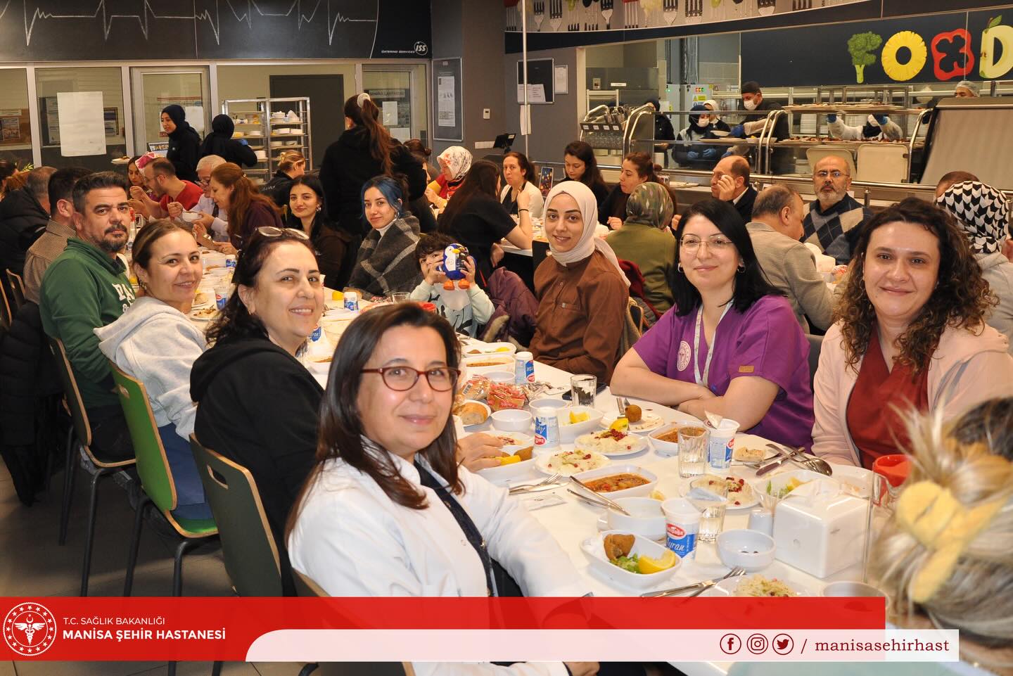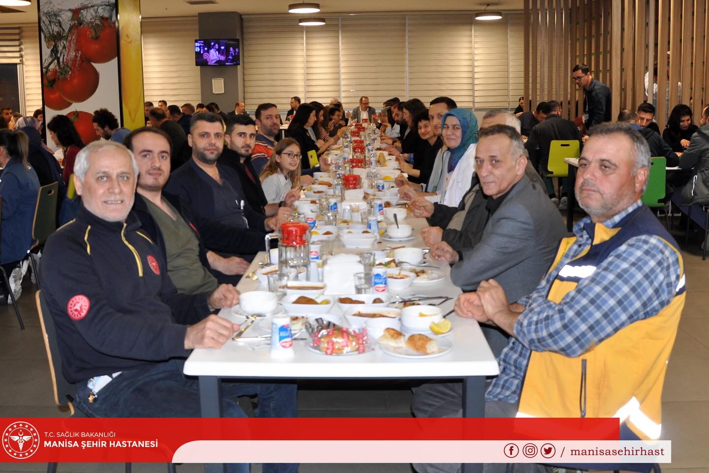 İftar organizasyonuna, Manisa İl Sağlık Müdürlüğü yöneticileri ile hastane yönetimi katılım sağladı. Katılımcılar, ezanın okunmasının ardından aynı sofrada oruçlarını açtı.