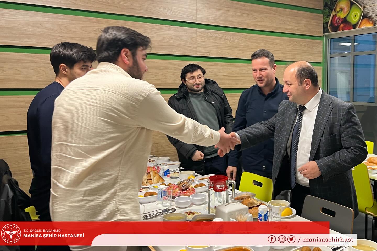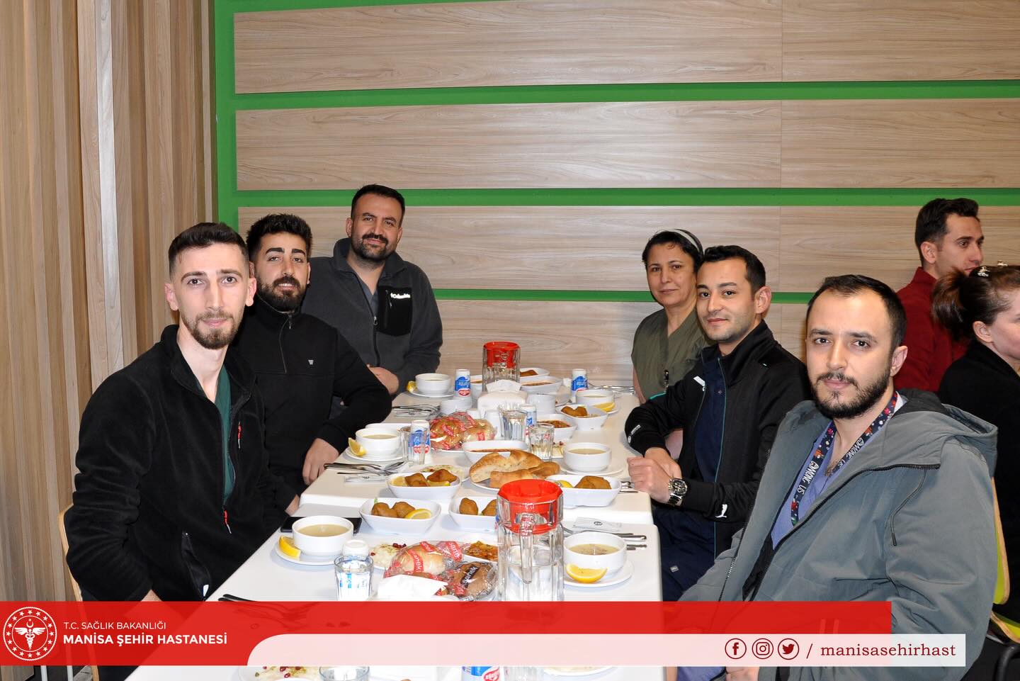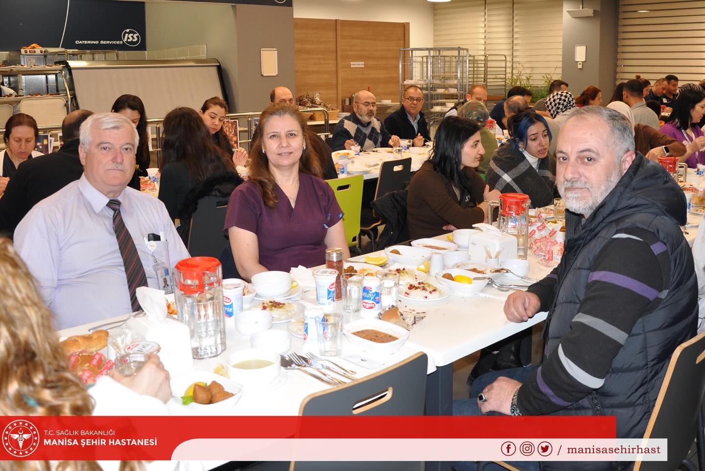 Programa Manisa İl Sağlık Müdürü Mehmet Fatih Zeren, İl Sağlık Müdürlüğü başkan ve başkan yardımcıları ile Hastane Başhekimi Serkan Saka katıldı. Ayrıca hastane idarecileri ve görev başındaki sağlık çalışanları da iftar programında yer aldı.