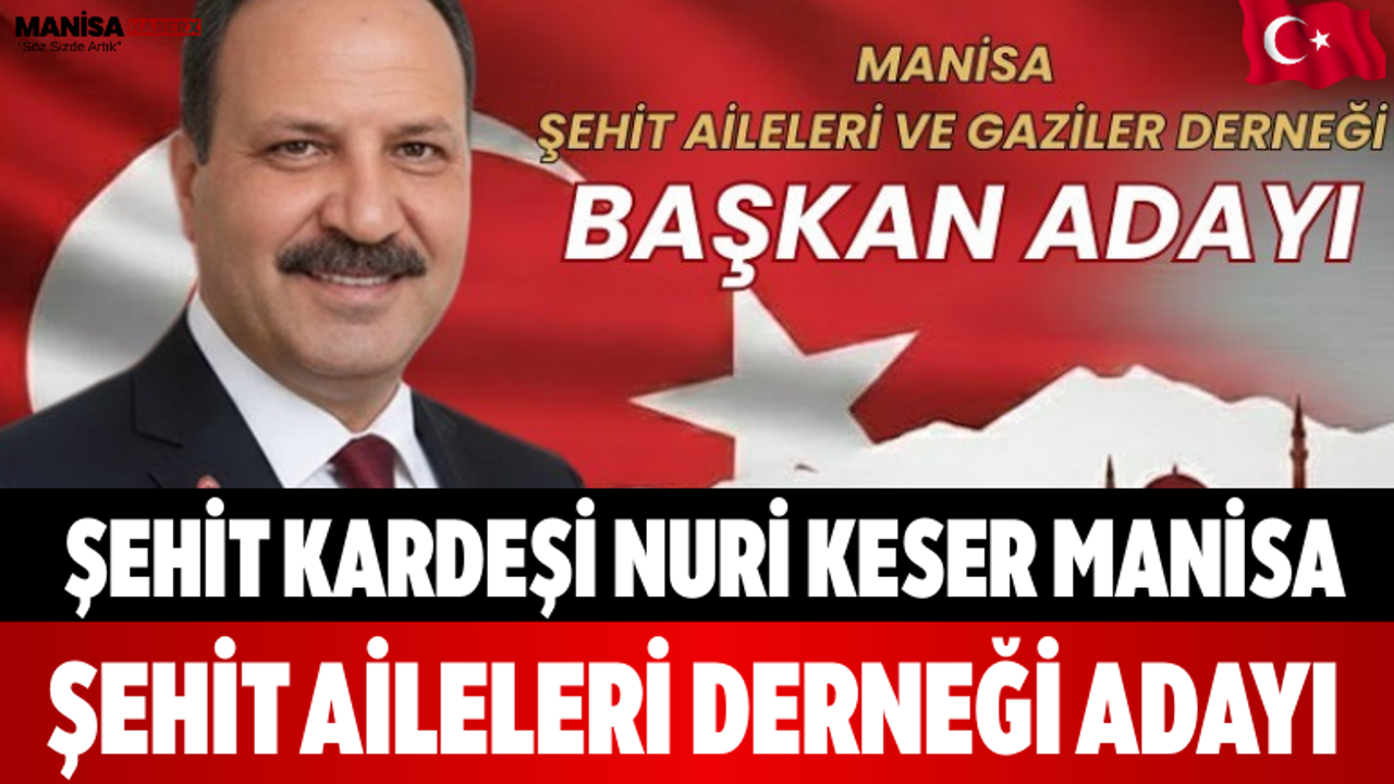 Manisa Alaşehir Horzum Keserler Köyü Peynirçukuru Mahallesi doğumlu Nuri KESER, Manisa Şehit Aileleri ve Gaziler Derneği Başkan Adayı olduğunu kamuoyuna duyurdu.