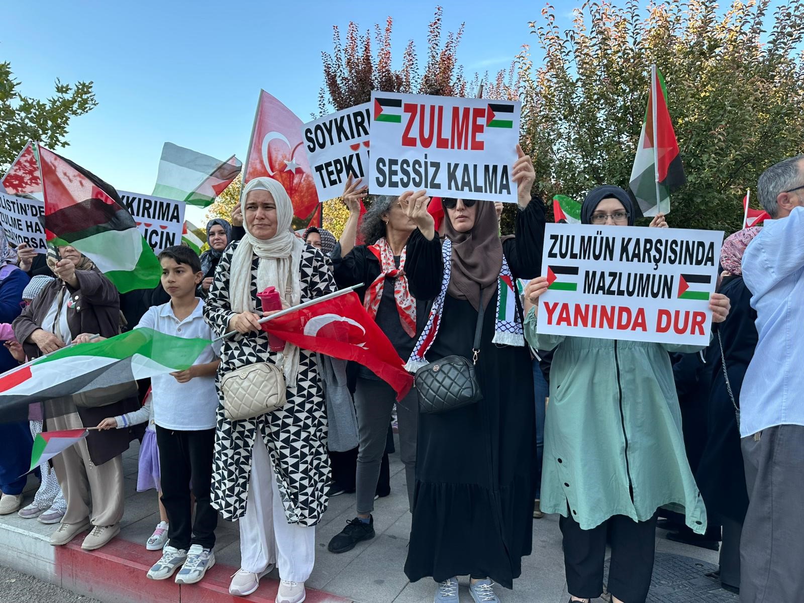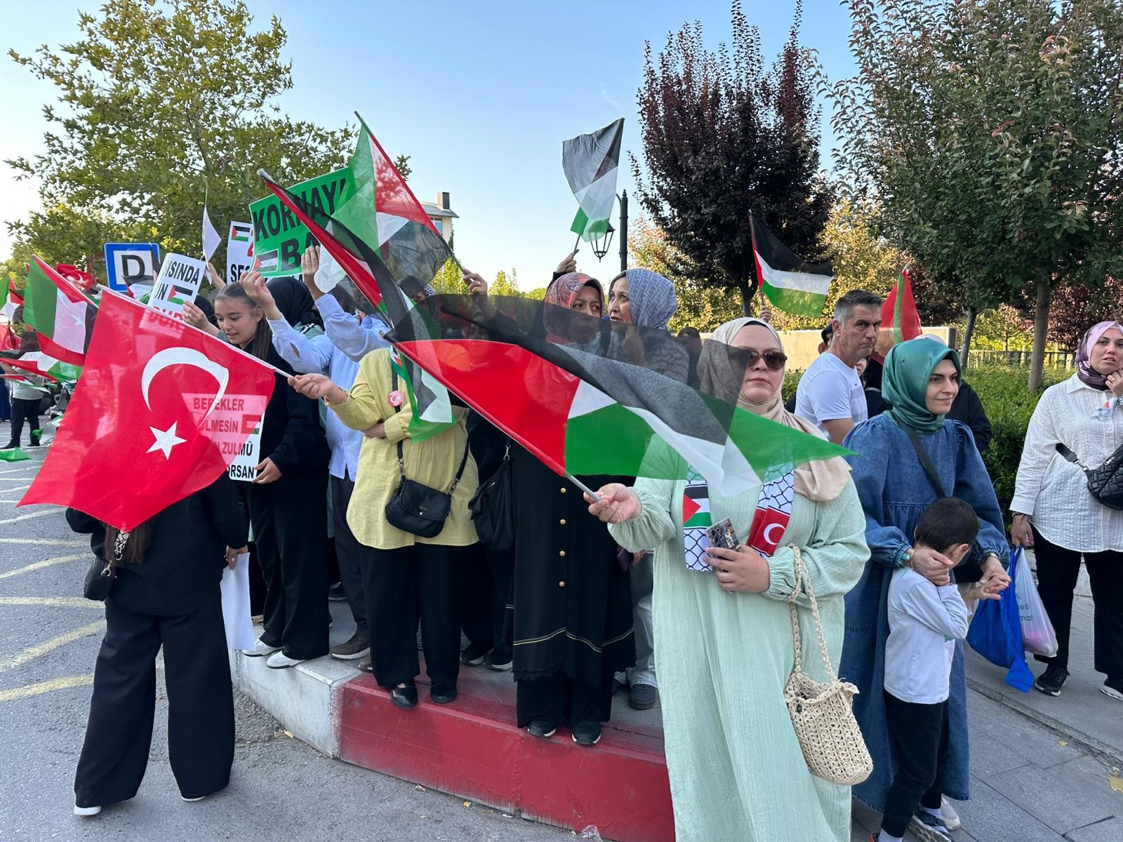 Kavşaktan geçen araçlarıyla destek veren sürücüler, etkinliğe aktif katılım gösterdi. Alanda toplanan vatandaşlar ise sloganlarla Filistin halkına sahip çıktıklarını ifade etti.