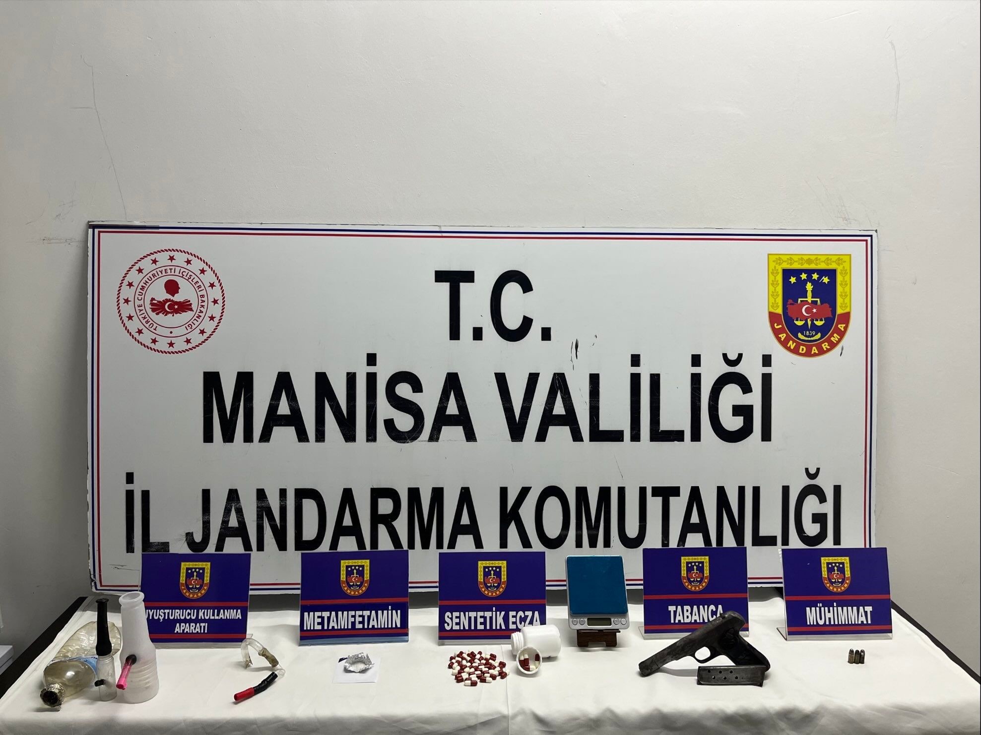 Arama sırasında 42 adet sentetik hap, 2 gram uyuşturucu madde, 1 adet hassas terazi, 5 adet uyuşturucu kullanma aparatı ve 1 adet tabanca ele geçirildi. Ele geçirilen maddeler ve ekipmanlar tutanakla kayıt altına alındı.