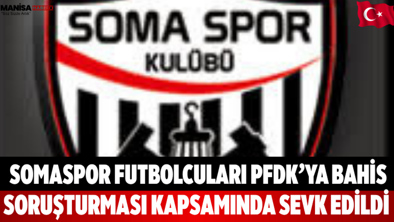 Lig Kırmızı Grup ekiplerinden Somaspor, Türkiye Futbol Federasyonu (TFF) tarafından yürütülen bahis soruşturması kapsamında bazı futbolcularının Profesyonel Futbol Disiplin Kurulu’na (PFDK) sevk edildiğini açıkladı.