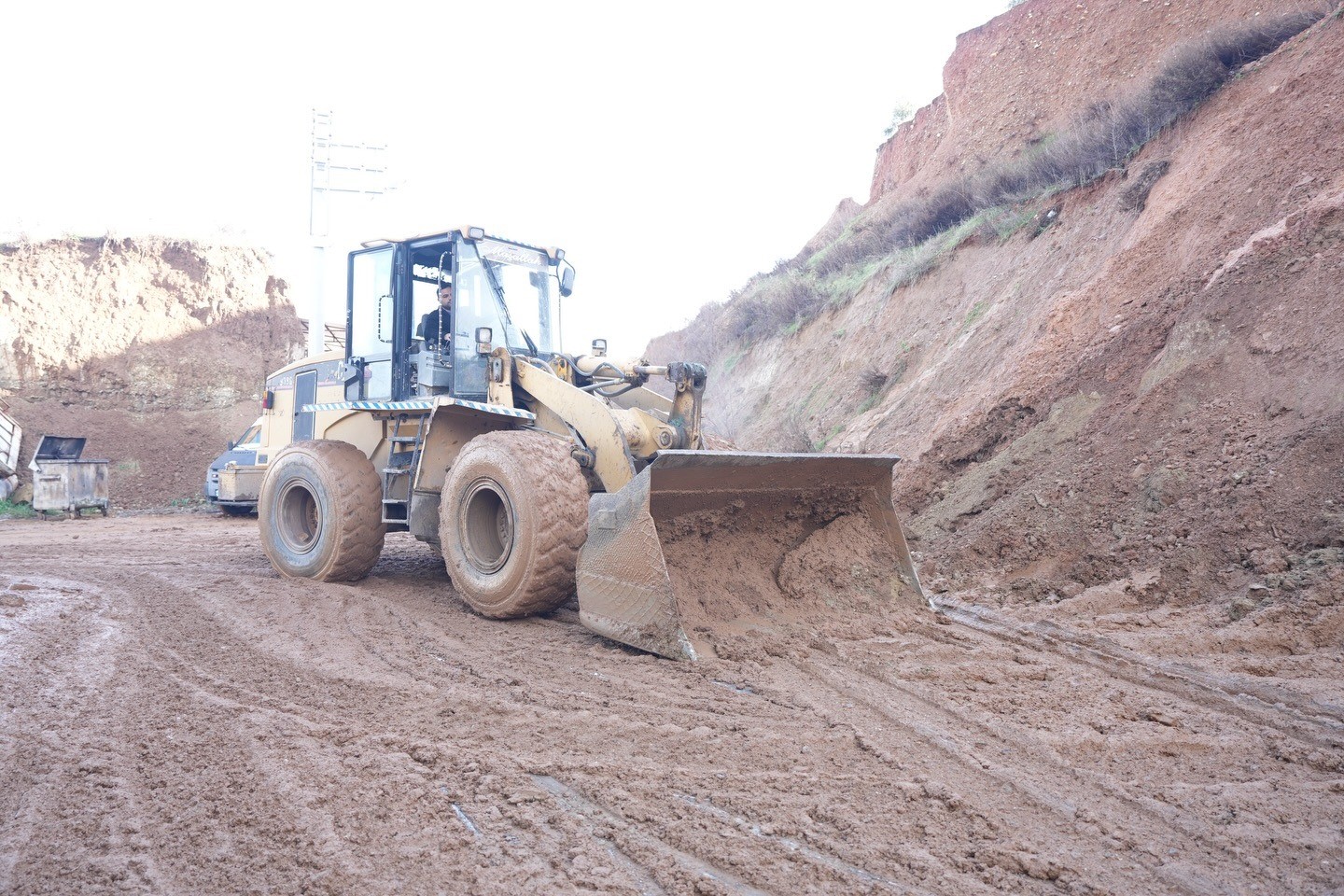 Toprak kayması, Turgutlu’daki Erbiller Sanayi Sitesi’nde gerçekleşti. Yağışın şiddetini artırmasının ardından zemin yapısının suya doyması nedeniyle kayma meydana geldiği öğrenildi.