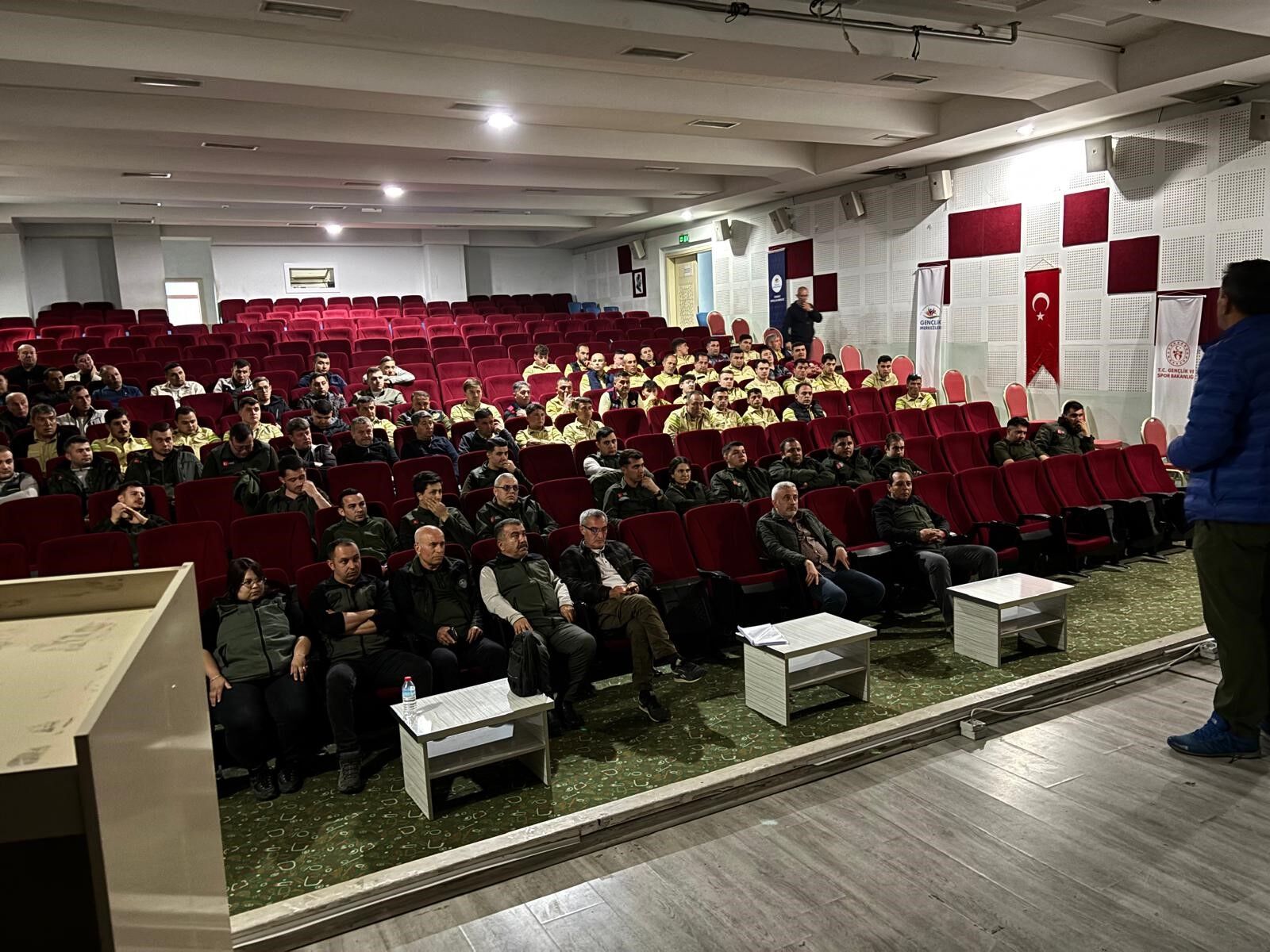 Eğitimlerde telsiz ve muhabere teknikleri, orman yangınlarının çıkış nedenleri, coğrafi faktörlerin yangın üzerindeki etkisi ve yasal sorumluluklar ele alındı. Katılımcıların bilgi düzeyini artırmaya yönelik sunumlar gerçekleştirildi.