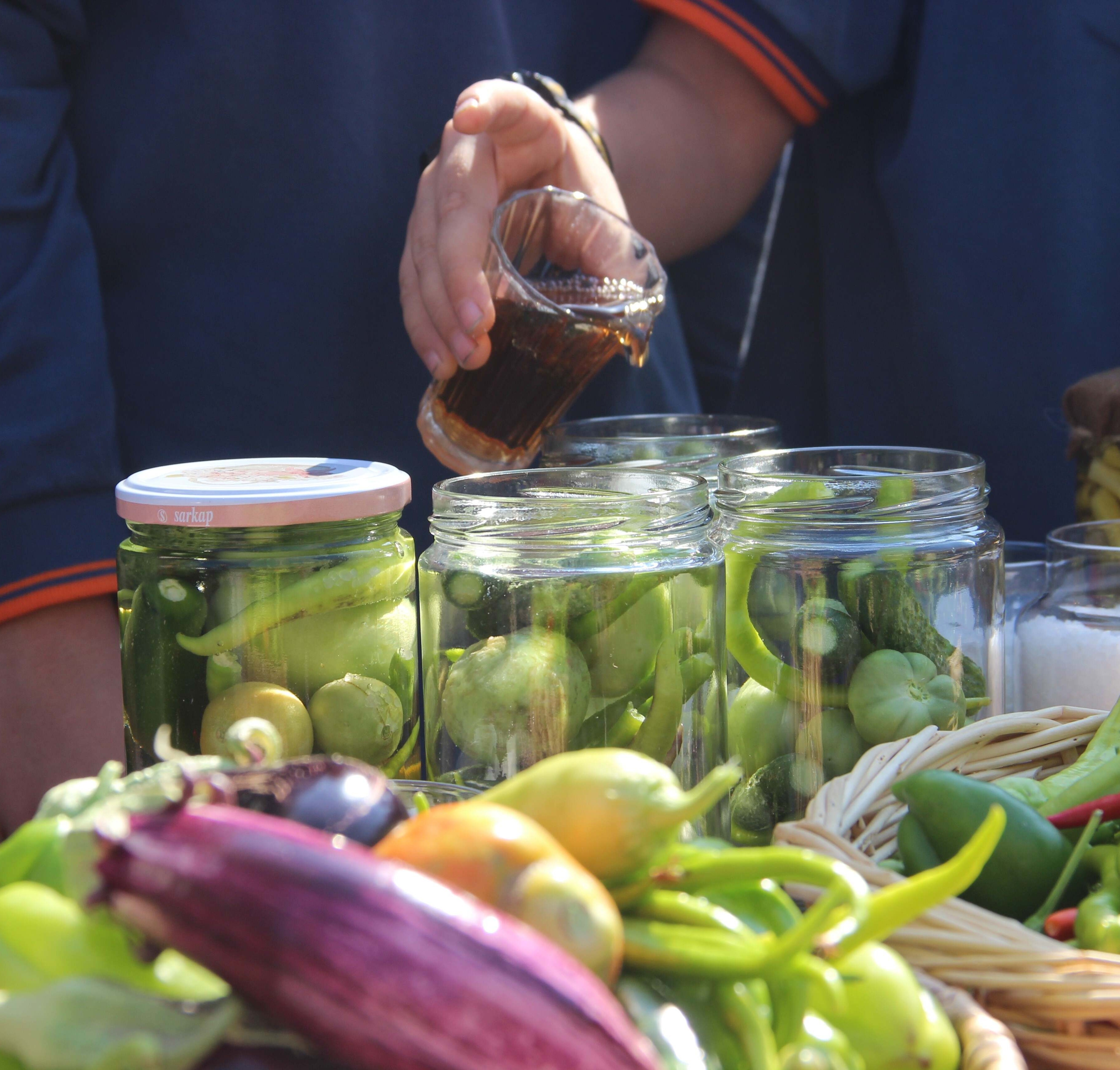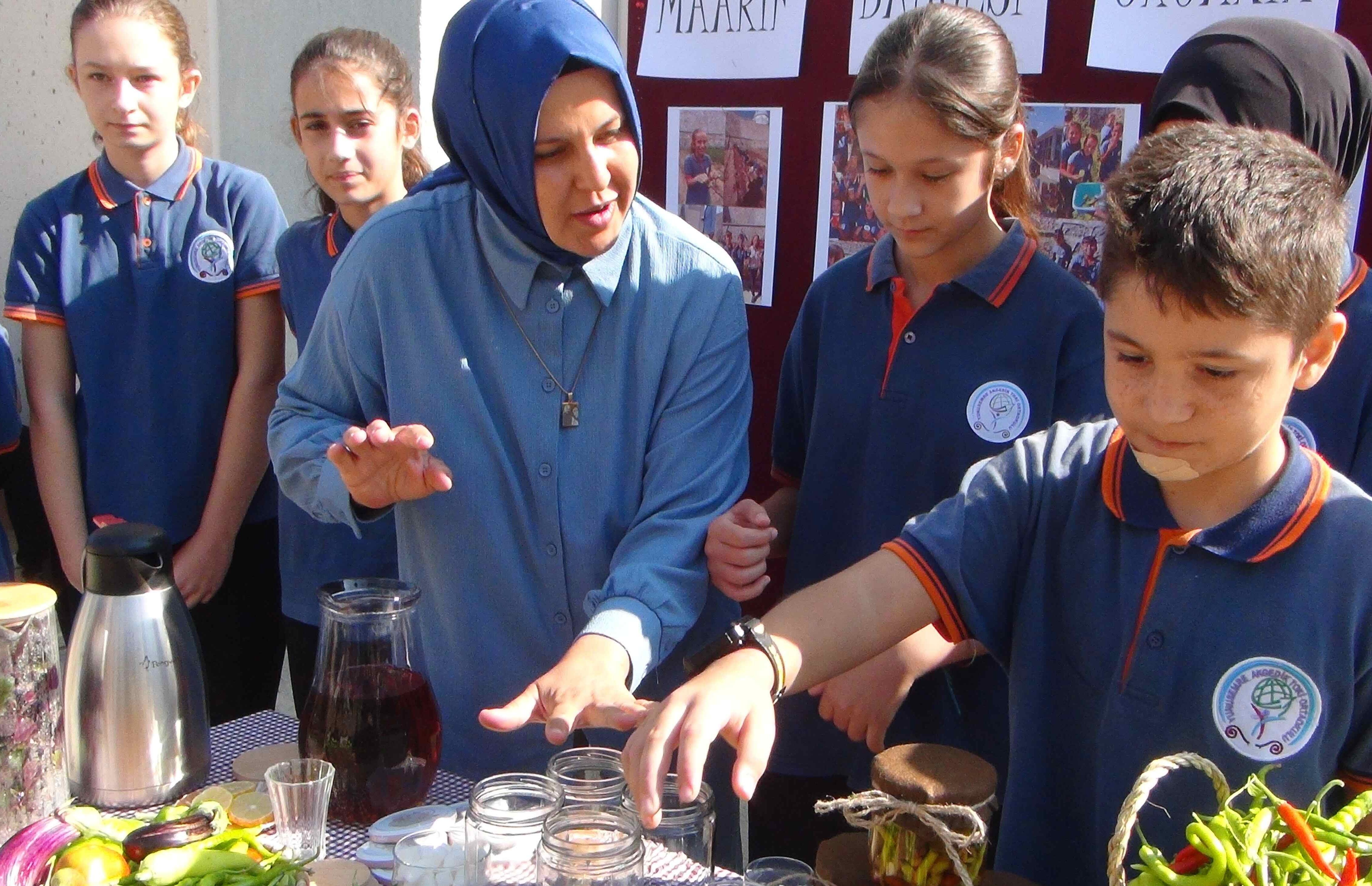 Okul bahçesinde biber, salatalık, domates, patlıcan ve lahana yetiştiren öğrenciler, hasat ettikleri ürünlerden turşular hazırlıyor. Elde edilen gelirlerle okul ihtiyaçları karşılanıyor, yeni sezon için bahçe düzenleniyor ve kazancın bir kısmı ihtiyaç sahiplerine aktarılıyor.
