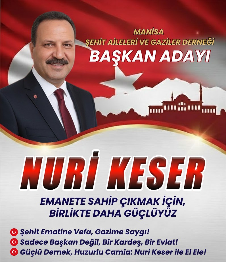 Manisa Şehit Aileleri ve Gaziler Derneği’nde yaklaşan genel kurul öncesinde adayların saha çalışmalarını sürdürdüğü öğrenildi. Nuri Keser’in, Manisa genelinde şehit aileleri ve gazilere yönelik ziyaretlerine devam edeceği bildirildi.